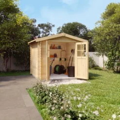 Abri de jardin en bois massif certifié PEFC, conçu pour le rangement des outils, équipements de jardin et matériel extérieur. Sa structure en madriers de 19 mm d’épaisseur assemblés par emboîtement assure une excellente stabilité et une bonne résistance dans le temps.